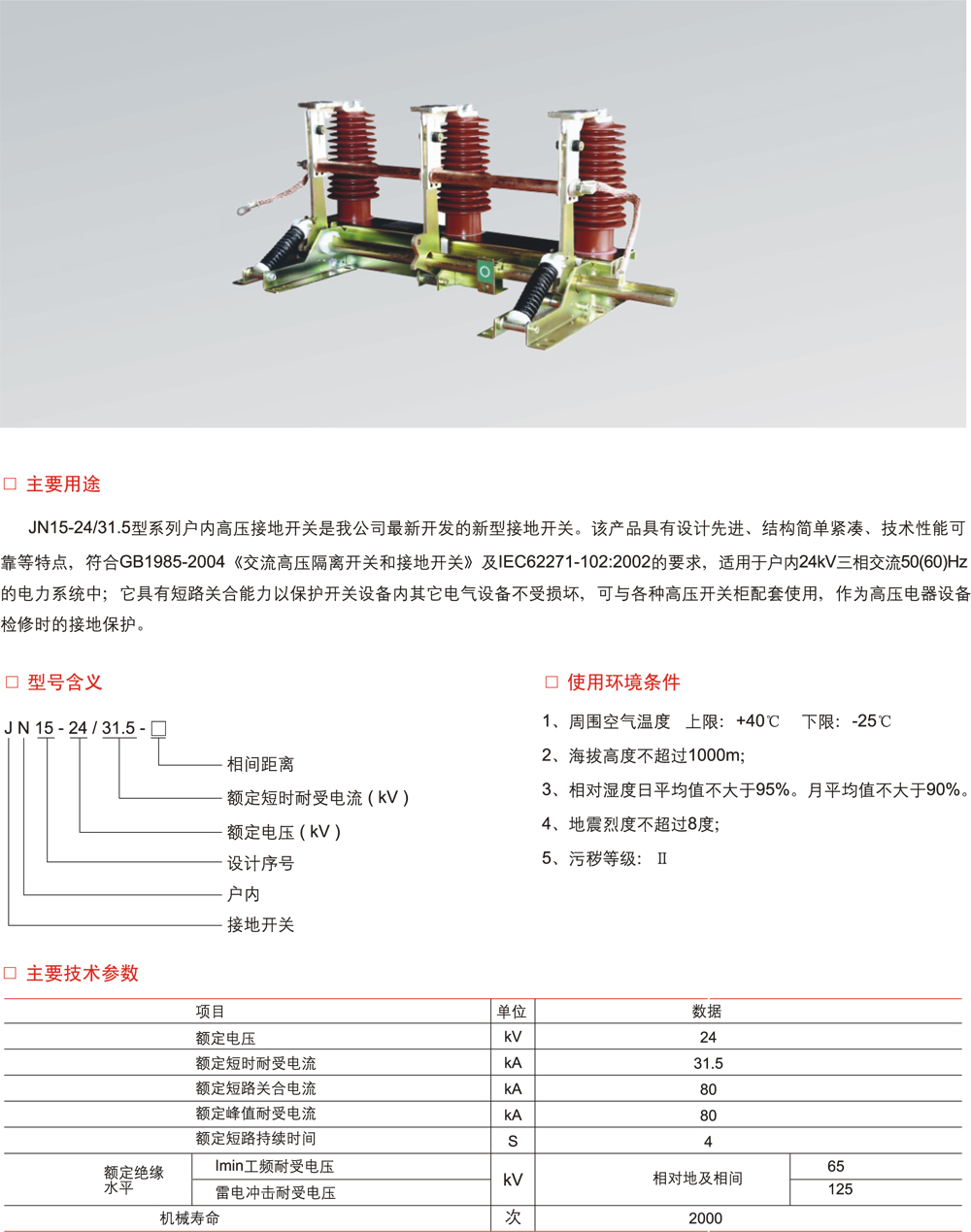 JN15-24/31.5型戶內(nèi)高壓接地開關(guān)