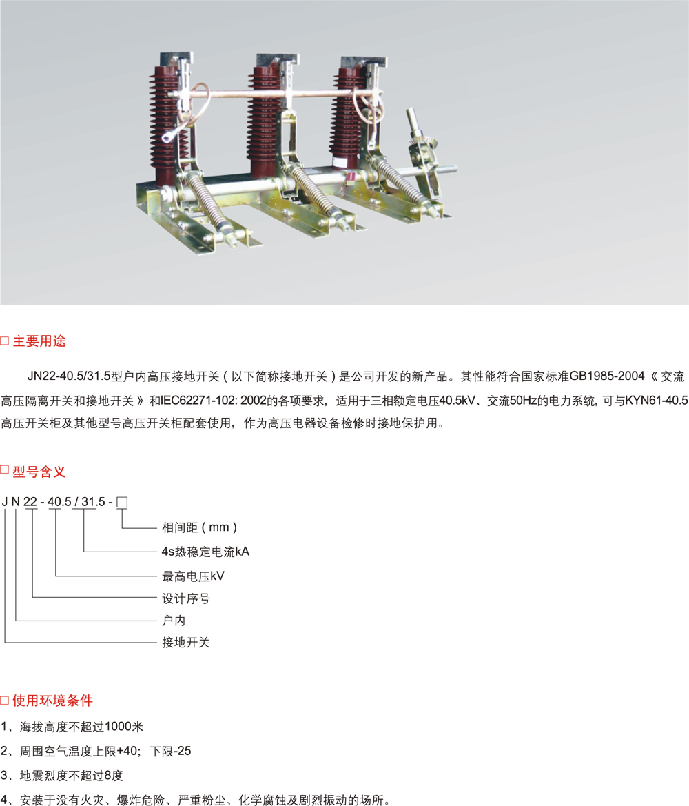 JN22-40.5/31.5型戶內(nèi)高壓接地開關(guān)