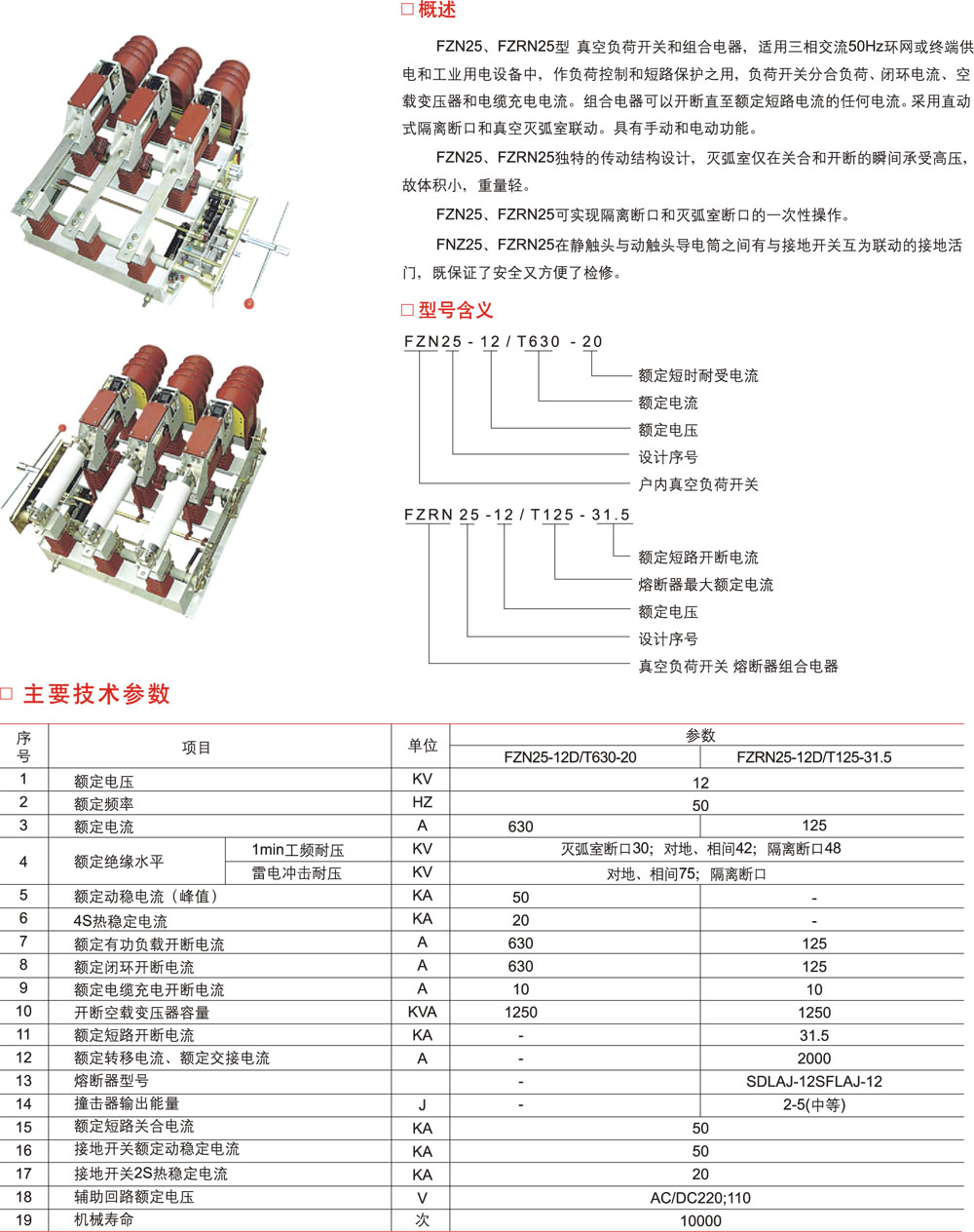 FZN25戶內(nèi)高壓負(fù)荷開關(guān)、FZRN25戶內(nèi)高壓負(fù)荷開關(guān)及熔斷器組合電器