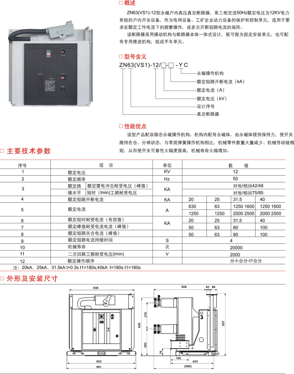 ZN63(VS1)-12永磁戶內(nèi)高壓真空斷路器