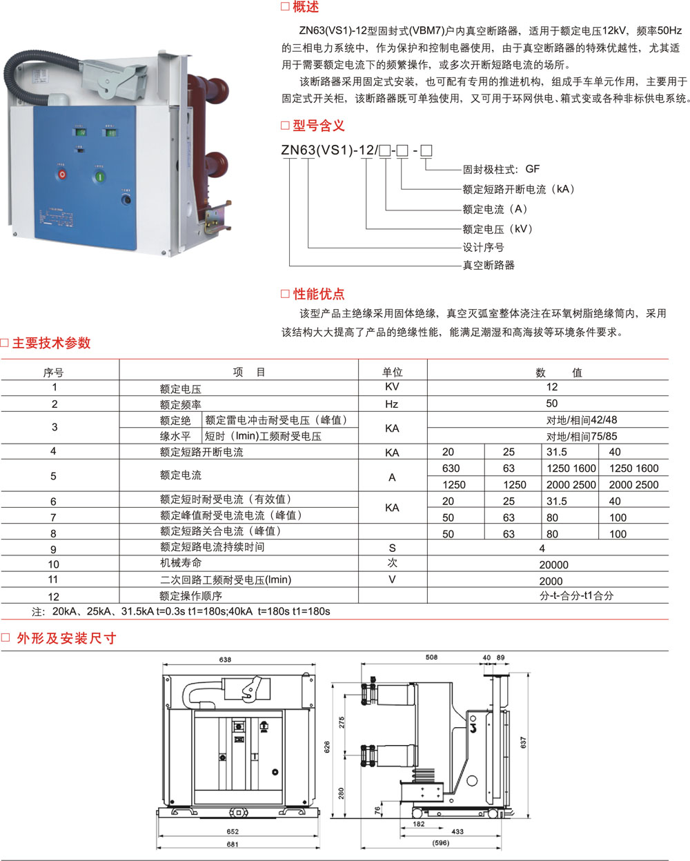 ZN63(VS1)-12固封式戶內(nèi)交流高壓真空斷路器